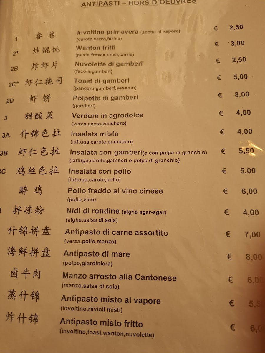 If you're craving a rice dish, the Riso Chao La Fan will satisfy, providing a delicious blend of flavors. For something light and refreshing, the Insalata Con Gamberi pairs fresh greens with succulent shrimp, making it a perfect choice for a healthy meal. The Pollo Alle Mandorle offers tender chicken cooked with almonds in a flavorful sauce, while the Toast Di Gamberi presents a crunchy shrimp-filled toast, ideal as a starter.